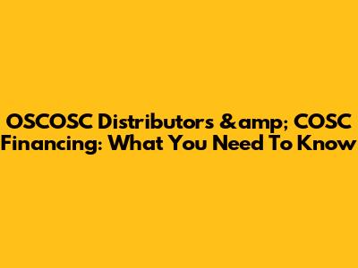 OSCOSC Distributors & COSC Financing: What You Need To Know