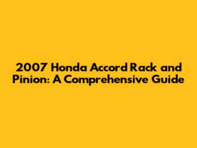 Hey guys! So, you're here because you're probably dealing with some steering issues in your trusty 2007 Honda Accord, right? Maybe you're hearing some weird noises, or your steering feels a bit off. Well, chances are, you might be looking at a 2007 Honda Accord rack and pinion problem. Don't worry, we're going to break down everything you need to know about this vital steering component – from what it does, to the signs of failure, and even what you can expect when it comes to repairs or replacement. Let's dive in and get your Accord steering smooth again!