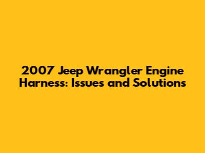 Solutions: Repairing or Replacing Your 2007 Jeep Wrangler Engine Harness