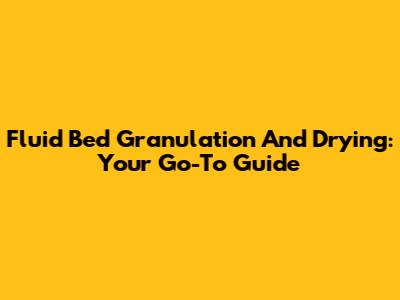 Fluid Bed Granulation And Drying: Your Go-To Guide
