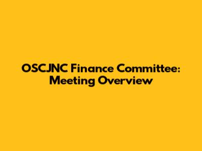 OSCJNC Finance Committee: Meeting Overview