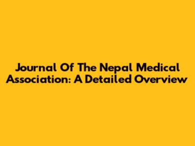 Journal Of The Nepal Medical Association: A Detailed Overview