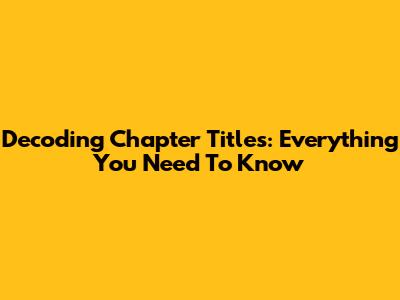 Decoding Chapter Titles: Everything You Need To Know