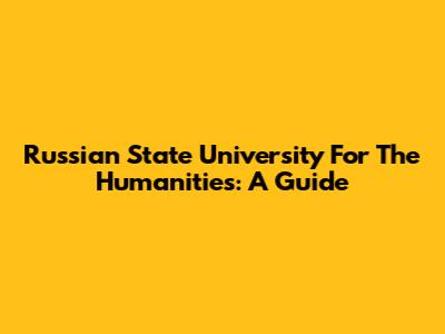 Russian State University For The Humanities: A Guide