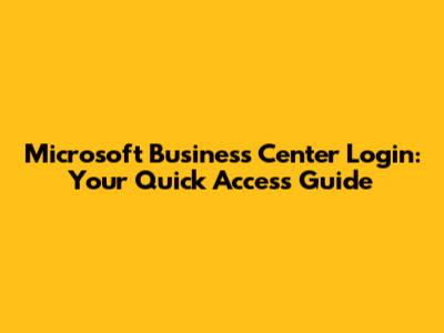 Microsoft Business Center Login: Your Quick Access Guide