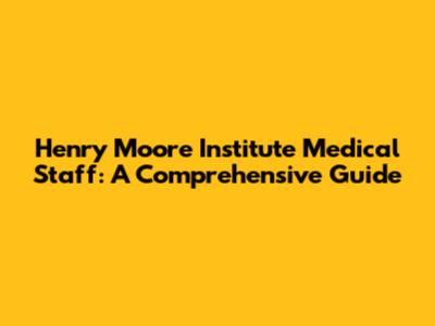 Henry Moore Institute Medical Staff: A Comprehensive Guide