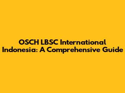 OSCH LBSC International Indonesia: A Comprehensive Guide