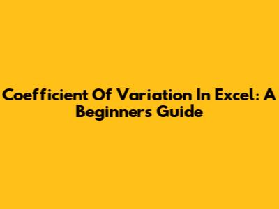 Coefficient Of Variation In Excel: A Beginner's Guide