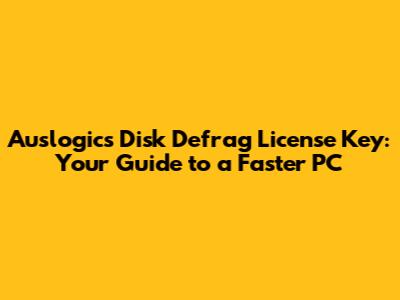 Hey guys! Are you tired of your computer feeling sluggish? Do you find yourself waiting ages for programs to load or files to open? Well, you're not alone. One of the primary culprits behind a slow PC is disk fragmentation. That's where Auslogics Disk Defrag comes in, and today, we're diving deep into Auslogics Disk Defrag License Keys and how they can supercharge your computer's performance. So, grab a coffee (or your beverage of choice), and let's get started on the journey to a faster, more efficient PC experience.
