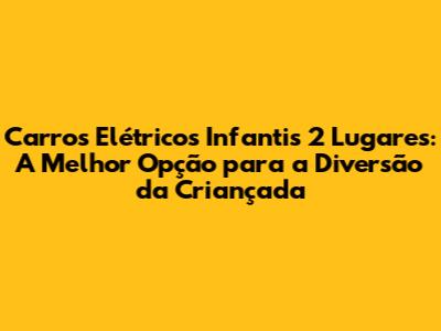 Carros Elétricos Infantis 2 Lugares: Diversão E Segurança Garantidas