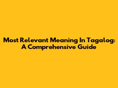 Most Relevant Meaning In Tagalog: A Comprehensive Guide