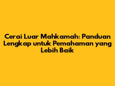 Cerai luar mahkamah, atau perceraian di luar pengadilan, adalah pilihan yang semakin populer bagi pasangan yang ingin mengakhiri pernikahan mereka. Guys, artikel ini akan membahas secara mendalam tentang cerai luar mahkamah, mulai dari pengertian, proses, hingga implikasinya. Kita akan mengupas tuntas seluk-beluk perceraian jenis ini, sehingga Anda bisa membuat keputusan yang tepat. Mari kita mulai!