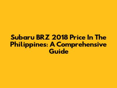 Subaru BRZ 2018 Price In The Philippines: A Comprehensive Guide