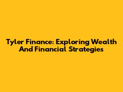 Tyler Finance: Exploring Wealth And Financial Strategies