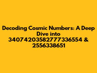Hey guys! Let's dive into something a little… cosmic. We're talking about numbers, specifically two massive ones: 34074203582777336554 and 2556338651. Now, I know what you're thinking: "Woah, those are some serious digits!" And you're absolutely right. But don't worry, we're not going to get bogged down in complex math. Instead, we'll explore what these numbers could represent, the fascinating realms they might touch upon, and maybe, just maybe, unlock a little bit of mystery along the way. Think of it like a treasure hunt, but instead of gold, we're searching for understanding.