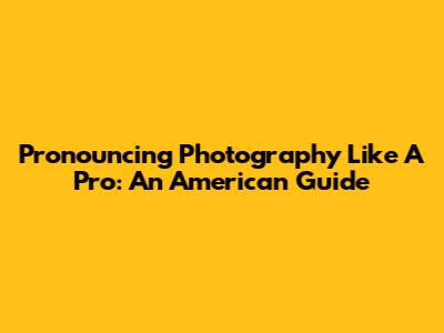 Pronouncing Photography Like A Pro: An American Guide