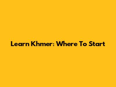 Learn Khmer: Where To Start