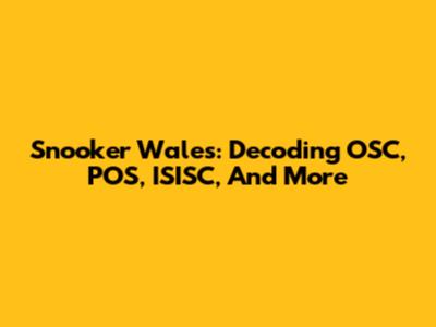 Snooker Wales: Decoding OSC, POS, ISISC, And More
