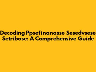 Decoding Ppsefinanasse Sesedvsese Setribose: A Comprehensive Guide