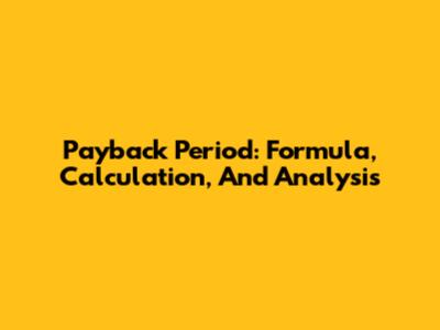 Payback Period: Formula, Calculation, And Analysis