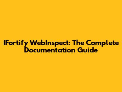 IFortify WebInspect: The Complete Documentation Guide