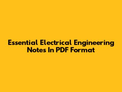 Essential Electrical Engineering Notes In PDF Format