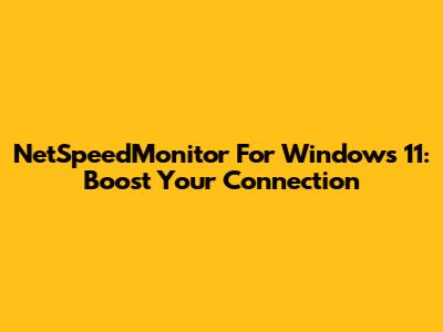 NetSpeedMonitor For Windows 11: Boost Your Connection