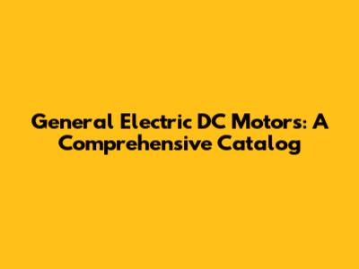 General Electric DC Motors: A Comprehensive Catalog