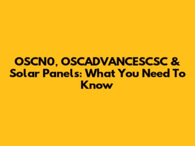 OSCN0, OSCADVANCESCSC & Solar Panels: What You Need To Know