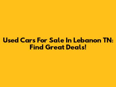Used Cars For Sale In Lebanon TN: Find Great Deals!
