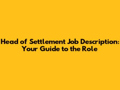 These responsibilities are the bedrock of the Head of Settlement job description. They demand a well-rounded individual with a mix of technical skills, leadership abilities, and a knack for problem-solving. This is serious stuff, and the person in this role carries a lot of weight on their shoulders, but in return, the satisfaction of a job well done is hard to beat.