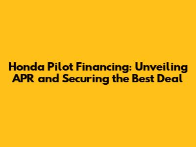 Honda Pilot Financing: Unveiling APR and Securing the Best Deal