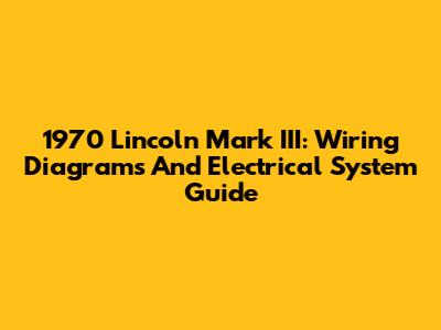 1970 Lincoln Mark III: Wiring Diagrams And Electrical System Guide