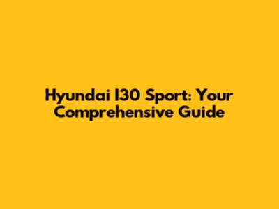 Hyundai I30 Sport: Your Comprehensive Guide