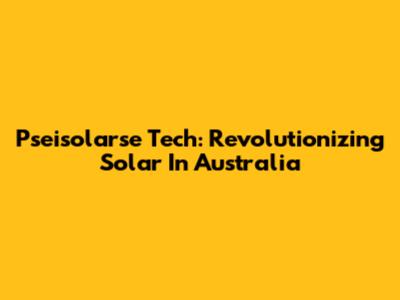 Pseisolarse Tech: Revolutionizing Solar In Australia