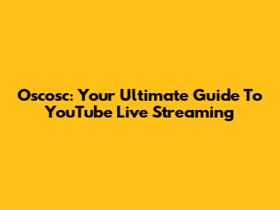 Oscosc: Your Ultimate Guide To YouTube Live Streaming