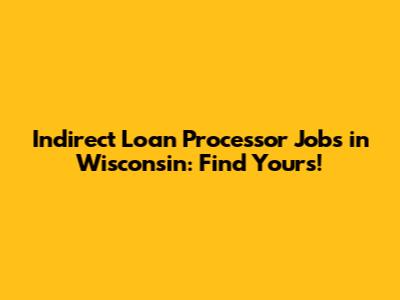 Indirect Loan Processor Jobs In Wisconsin: Find Yours!