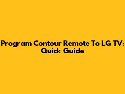 Program Contour Remote To LG TV: Quick Guide