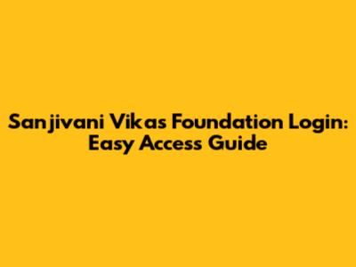 Sanjivani Vikas Foundation Login: Easy Access Guide