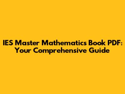 IES Master Mathematics Book PDF: Your Comprehensive Guide