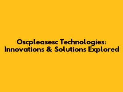 Oscpleasesc Technologies: Innovations & Solutions Explored