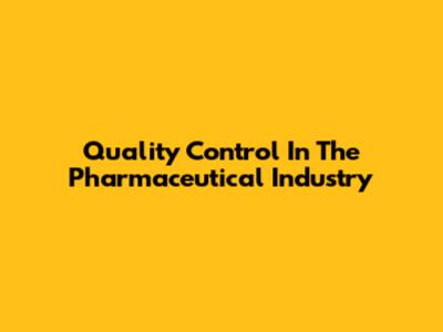 Quality Control In The Pharmaceutical Industry