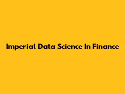 Imperial Data Science In Finance