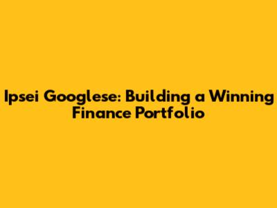 Hey guys! Today, we're diving deep into the world of finance with a focus on how to build a winning portfolio, Ipsei Googlese style. Whether you're just starting out or looking to revamp your current strategy, understanding the key principles of portfolio construction is crucial. Let's break it down and make finance less intimidating and more, well, fun! Think of your portfolio as a team of all-star players, each contributing unique skills to achieve your financial goals. Now, when we talk about Ipsei Googlese, what comes to mind? Maybe it's innovation, maybe it's a fresh perspective. That’s exactly what we need to bring to our finance game. It’s not just about throwing money at stocks and hoping for the best; it’s about a strategic, informed approach that considers your individual circumstances and risk tolerance. So, grab your favorite beverage, settle in, and let's get started on building that awesome finance portfolio!