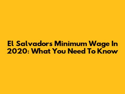 El Salvador's Minimum Wage In 2020: What You Need To Know