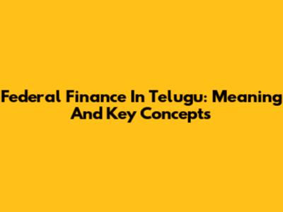 Federal Finance In Telugu: Meaning And Key Concepts