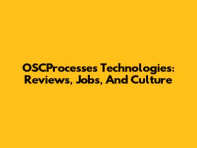 OSCProcesses Technologies: Reviews, Jobs, And Culture