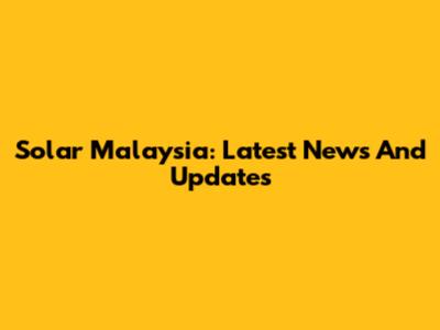 Solar Malaysia: Latest News And Updates