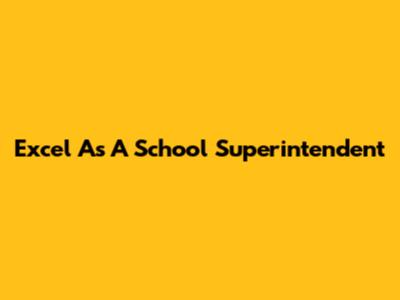 Excel As A School Superintendent