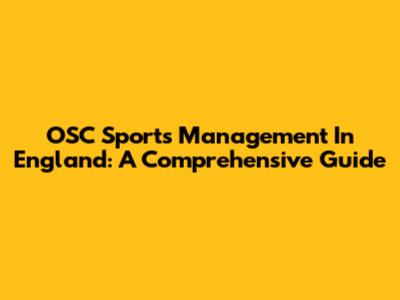 OSC Sports Management In England: A Comprehensive Guide
